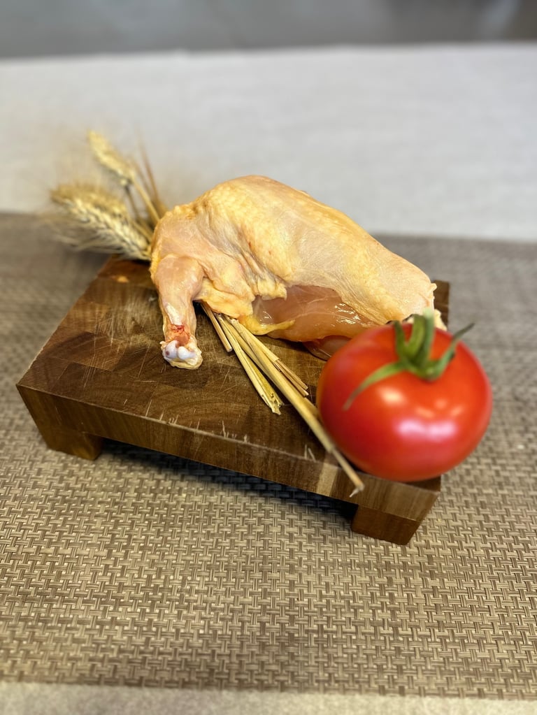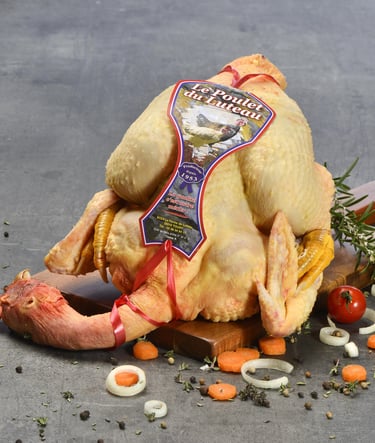 Laissez-vous séduire par la qualité reconnue par les consommateurs de notre poulet jaune, symbole d'authenticité et de plaisir culinaire.