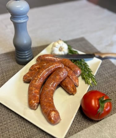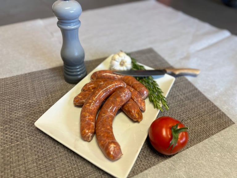 Osez l'aventure avec nos saucisses au poulet relevées au piment d'Espelette, un feu d'artifice de sensations.