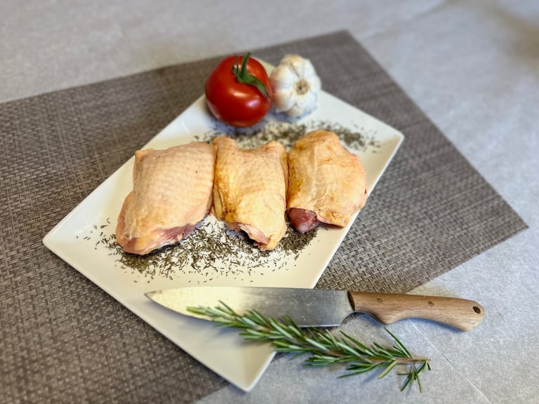 Succombez à la tendresse du haut de cuisse de poulet, une pièce généreuse, parfaite pour des plats riches en saveurs.